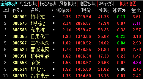 13:44,创业板涨3.34%,报2279,成交同比略增至837亿元。新能源汽车主题午后充电张、特斯拉、锂电池概念共16股涨停。
