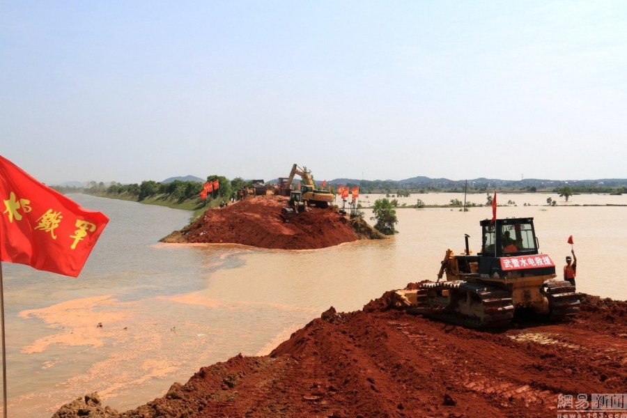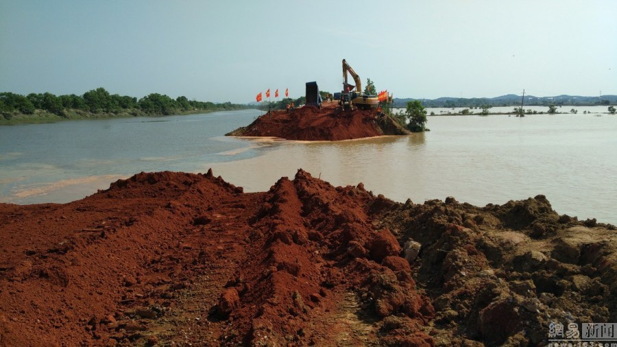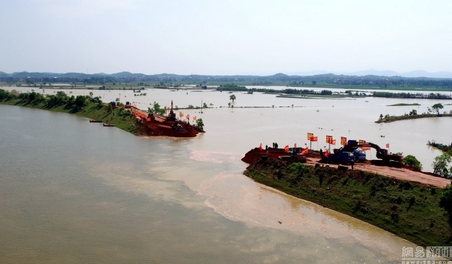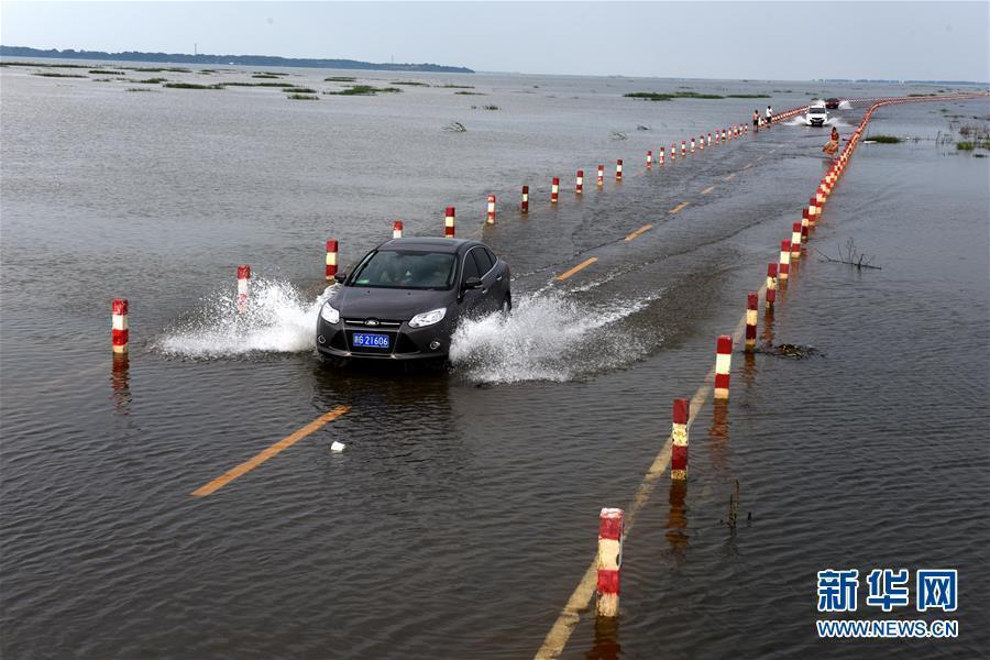 洪水漫过鄱阳湖保护区公路 车在水中行