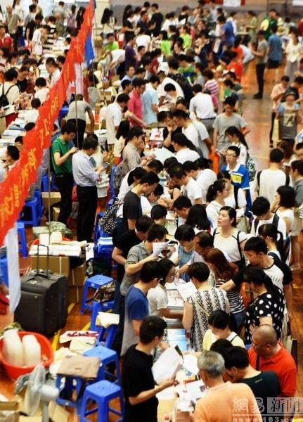 2016年6月23日,2016年浙江高校招生公益咨询会在杭州举行,由于浙江高考分数在一天前刚刚揭晓,使得本届“高招会”人气十分火爆,数万学生和家长“挤爆”现场。图为杭州高校招生咨询会现场。东方IC (来源媒体:网易综合 责任编辑:王絮颖_NN5348)