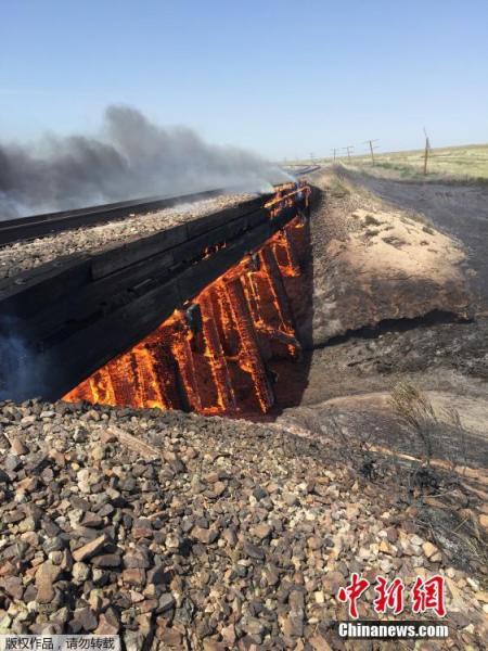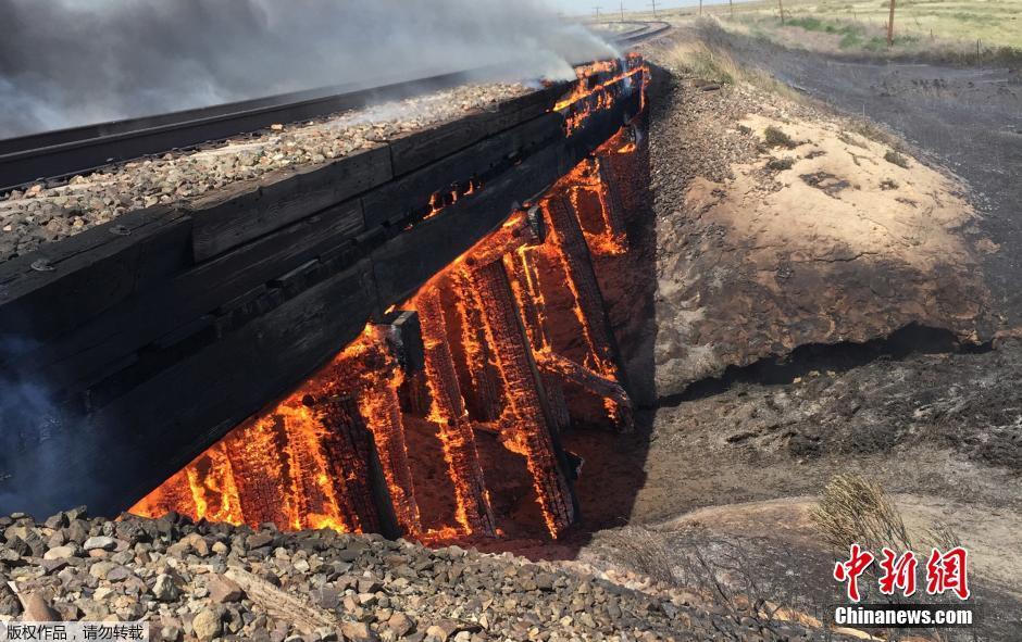 当地时间2016年6月22日,美国科罗拉多州Haswell,一废弃的铁路高架桥着火。美国南加州及西部地区高温导致多地发生森林大火,当地大批民众被迫撤离。(来源媒体:中新网 责任编辑:封摆_NN6080)