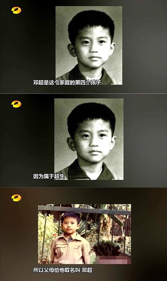 新浪娱乐讯 4月4日晚,湖南卫视新闻当事人节目中晒出邓超童年和姐姐合影,并曝料邓超名字由来。视频中,有多张邓超童年帅照以及和姐姐珍贵合影,并配音称,在邓超出生之前,父母双方各有儿女,邓超是这个家庭中的第四个孩子,因为属于超生,所以父母给他取名邓超!此爆笑视频曝光后,网友纷纷围观并留言调侃,以下摘取网友神回复: